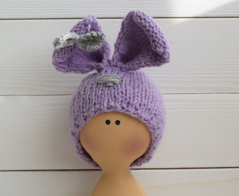Шапочка-зайка сиреневый